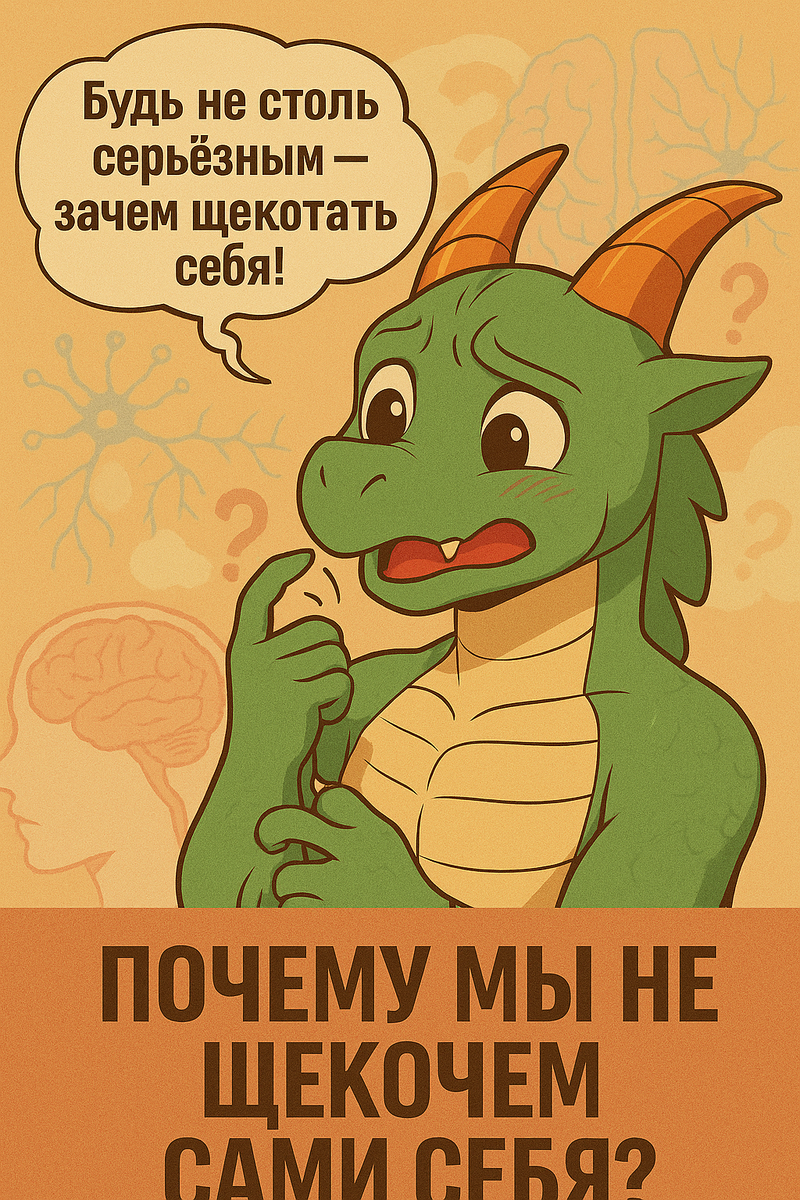 Щекотка — это странное и забавное явление. Когда кто-то щекочет нас, мы смеёмся и извиваемся. Но стоит попробовать пощекотать себя — и ничего не происходит. Почему так? Ответ кроется в особенностях работы нашего мозга. Когда мы двигаем рукой, чтобы пощекотать себя, мозг заранее знает, что произойдёт. Он посылает так называемую "эфферентную копию" — сигнал, который предсказывает ожидаемое ощущение от прикосновения.Это позволяет мозгу отличать собственные действия от внешних воздействий и снижать реакцию на предсказуемые стимулы. Мозжечок — часть мозга, отвечающая за координацию движений, играет ключевую роль в этом процессе. Он сравнивает предсказанные ощущения с реальными и, если они совпадают, подавляет реакцию на них. Таким образом, когда мы пытаемся пощекотать себя, мозг "отменяет" это ощущение. Учёные пытались обмануть мозг, создавая задержку между движением и ощущением щекотки. В одном из экспериментов использовался робот, который щекотал руку человека с небольшой задержкой посл