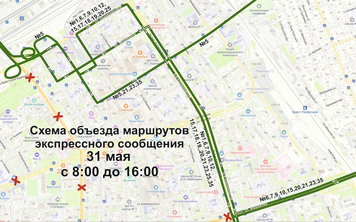 Важно! В центре Бреста 31 мая с 08:00 до 16:00 ограничат движение транспорта