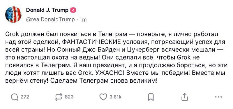 В ответ на пост UPD: пока что ситуация с Grok в телеге не совсем ясна Дуров во всю анонсил Грока в тг, но Илон одним твитом подбил все ожидания, сказав, что «Сделка не была подписана.» В таких обстоятельствах нашлось вот такое объяснение происходящему — и оно, кажется, самое логичное: