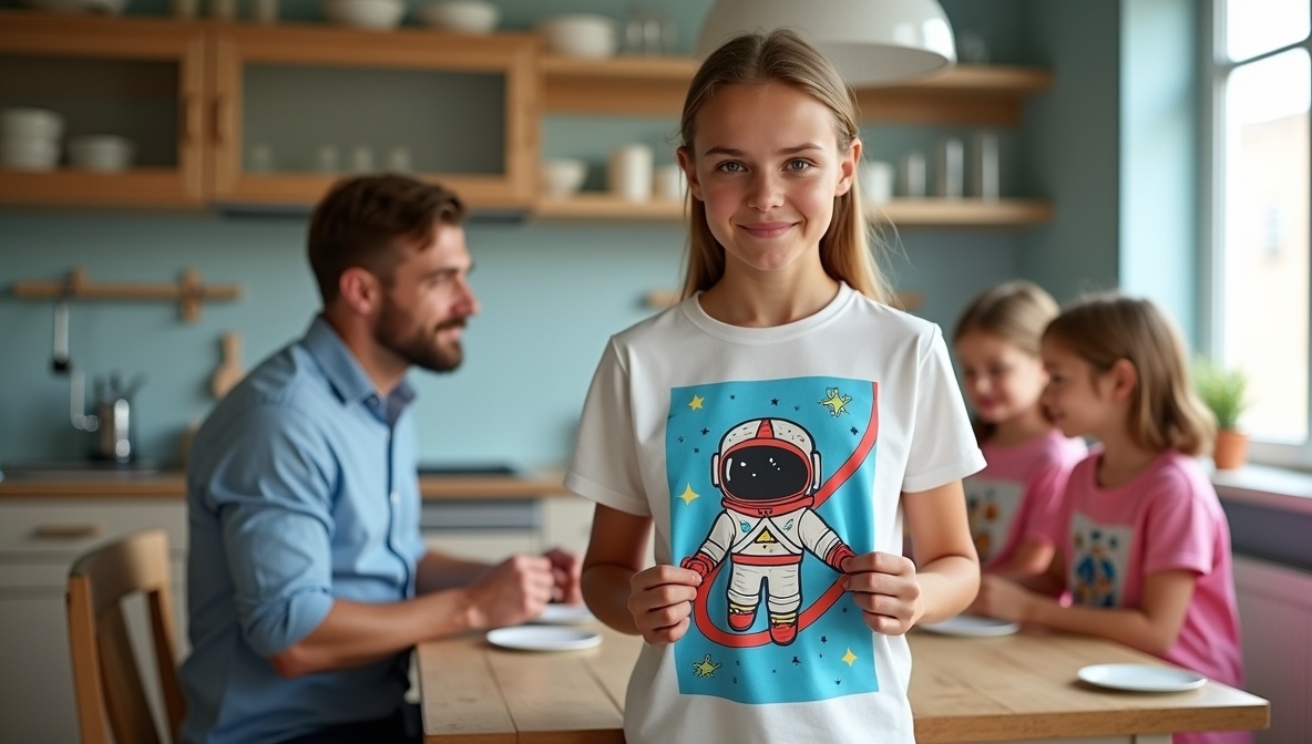 — Мам, это космонавт! — радостно закричала Маша, увидев рисунок на экране. — Можно мне такую футболку?