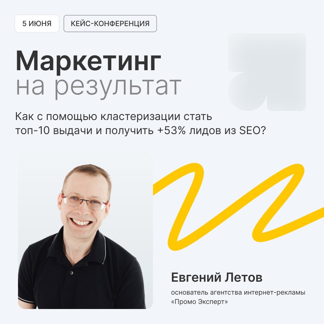 5 июня приглашаю на онлайн-конференцию, которую организуют наши друзья из Callibri «Маркетинг на результат»: реальные кейсы, живые цифры, рабочие инструменты На конференции узнаете, как маркетологи на практике решают конкретные задачи — без «воды», теории и рекламных обещаний. Всё, что увидите — кейсы с понятной логикой: что сделали, зачем и какой получили результат. Я выступлю с докладом «Как с помощью Колибри и семантики увеличили число лидов из SEO на 53%»: 🔹 Кластеризация семантического ядра, как способ продвижения в SEO 🔹 Через Яндекс Директ и Колибри к SEO-кластерам 🔹 Кластеризация + Колибри ⇒ Топ-10 выдачи, +53% лидов из SEO Почему стоит участвовать: 🔸 Только кейсы — никаких общих слов и гипотез 🔸 Все решения можно адаптировать под ваш бизнес 🔸 Бонус для участников — специальное предложение на инструменты Callibri Зарегистрируйтесь сейчас — и получите доступ к гайду по нейросетям в маркетинге. Это набор решений, которые реально работают. Зарегистрироваться и забрать п