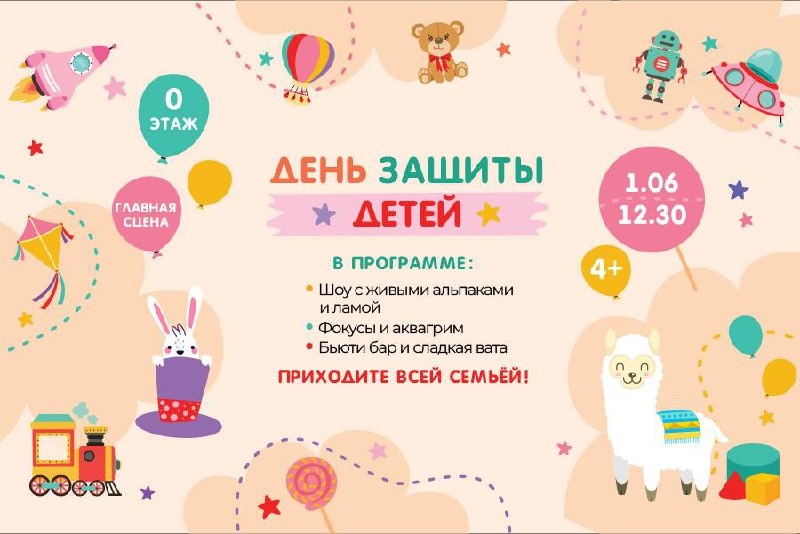 ➡️ День защиты детей в ТРЦ «Щёлковский» 1 июня | Щёлковское ш., 75, 0 этаж В программе: яркое шоу, настоящие животные, сладкая вата и даже немного волшебства. 12:30–13:30 — Анимационная программа, начало работы бьюти-бара (аквагрим, блеск-тату, стразы и блестки) и бесплатной сладкой ваты 13:30–14:10 — Шоу с настоящими альпаками и ламой (да, они делают трюки!) 14:10–15:00 — Активные игры с ярким реквизитом 15:00–15:30 — Шоу фокусов и знакомство с милыми ручными животными (кролик, ёж, черепаха и даже рыбка!) 15:30–16:30 — Финальная дискотека со всеми героями 🧷 Бесплатная Москва