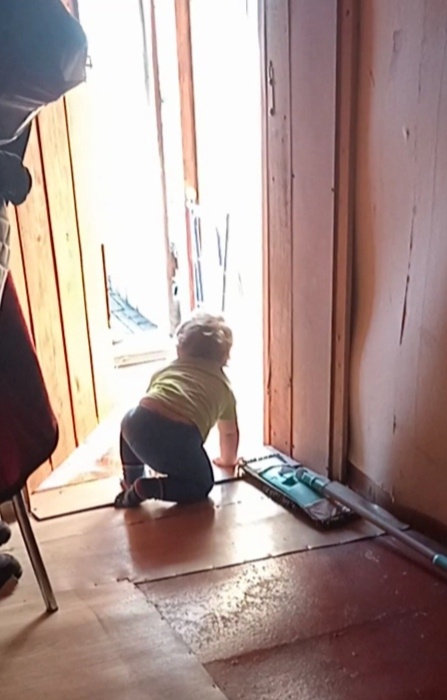Сегодня денёк у нас начался оживлённо 🤭 Паша так полюбил улицу и летнее солнышко, что уже сам уходит гулять не дождавшись меня😄 С утра мы проводили папочку на работу, умылись, покушали, в общем всё как обычно по плану и распорядку. Папа наш повёз груз в Тольятти, а я начала собирать ему груз на обратный рейс. Паша с котёнком игрались на полу, возле меня. Вдруг я не услышала, а почувствовала, что в комнате стало как-то странно тихо. Глянула, а малышей то возле меня и нету. Не сразу поняв куда они могли деться, я встала из - за стола и пошла посмотреть. Увидав открытую входную дверь я чуть не умерла со страху. Вообще у нас два крыльца. Один вход центральный с улицы, а второй выход во двор, в огород. И мы недавно начали оставлять этот выход немножко приоткрытым, что-бы котёнок мог выходить гулять. Но как выяснилось, одному котёнку гулять скучно, и они пошли на улицу вместе с Пашей. Мы ж с Тамарой ходим парой😊 Выбежав за ними, я обнаружила их двоих мирно играющих на крыльце, под тёп