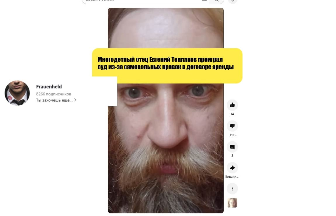 Московский суд к сожалению отказал красавчику Евгению Теплякову, многодетному отцу, в удовлетворении требований к собственникам съемной квартиры. Истец настаивал на продлении аренды до 2029 года и выплате компенсации семье вундеркиндов и морального вреда. Александра Королева, жилищный юрист: