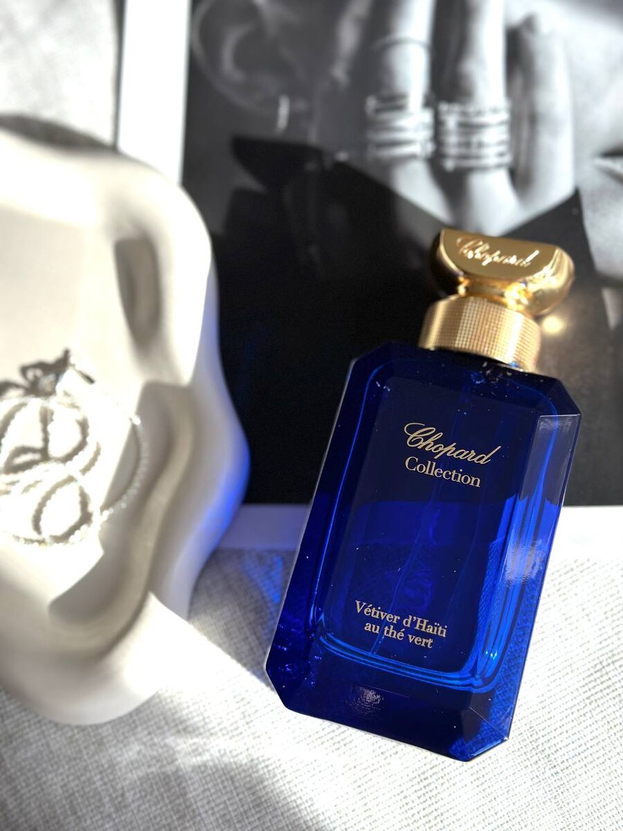 Бриллиант среди парфюмерной коллекции, именно так отзываются об этом аромате многие, кто решил разнообразить однажды свой парфюмерный гардероб. Chopard Vetiver d`Haiti au The Vert словно фон для образа, всегда его обрамляет и не отсвечивает. Потому он так удобен, т к подходит для любого повода и помогает вам подчеркнуть стиль и добавить индивидуальности, ведь подобного рода ароматные штрихи всегда на всех звучат по-разному, отражая особенности запаха кожи своего обладателя. Некоторые называют его родственником Молекулы 02 и отрицать это я не буду, амброксан, на мой взгляд, здесь очевиден. Тонкая парфюмерная игра на грани сдержанности и необычности, где ветивер и чай встают в авангард композиции, словно два партнёра, разыгрывающих камерный спектакль. Конструкция аромата строится вокруг мягко древесного, не землистого и не акватического ветивера — его природа здесь скорей сдержанно-сухая. Чай добавляет трепетную горчинку, легкую тень прозрачности — неназойливое, чуть дымное облако, тянущ