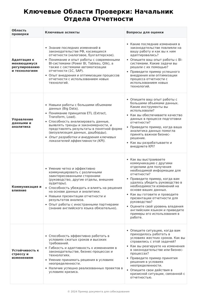 Подготовка к собеседованию на должность Начальника Отдела Отчетности
