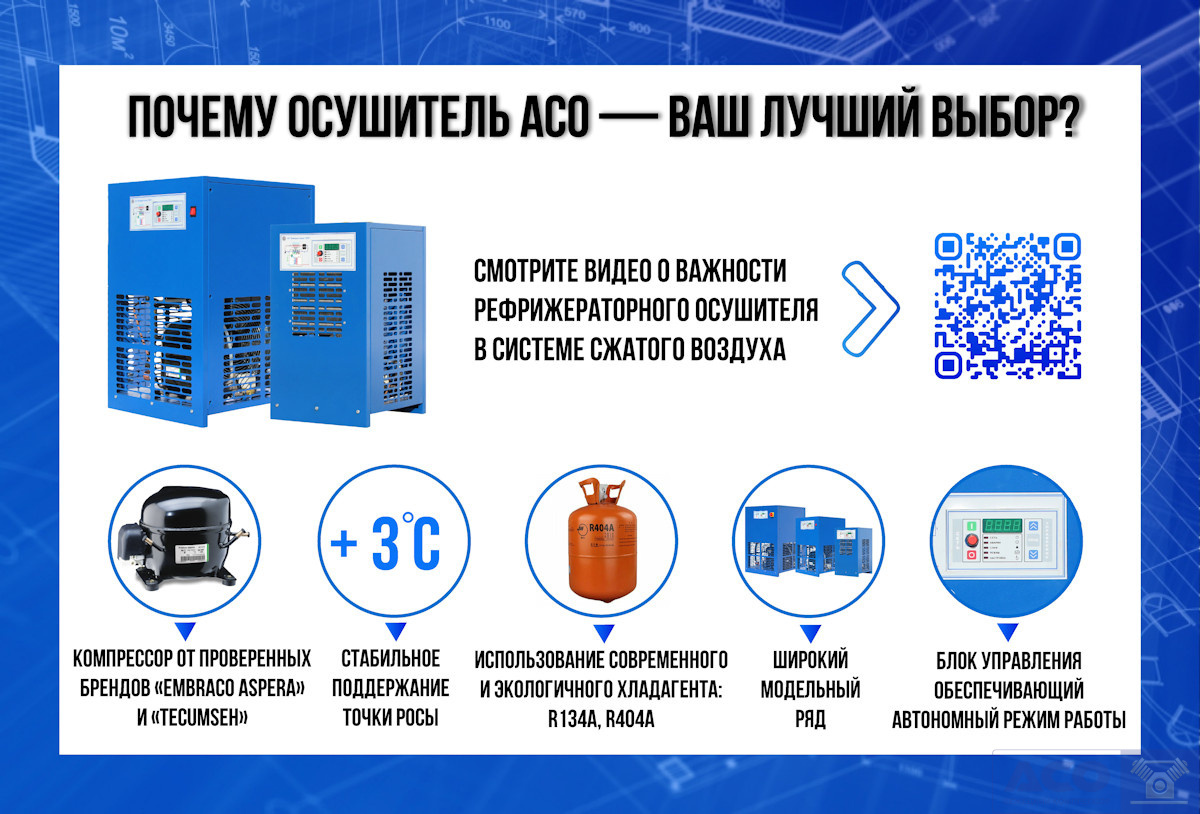 - Гибкая настройка точки росы – возможность регулировки в зависимости от потребностей производства.