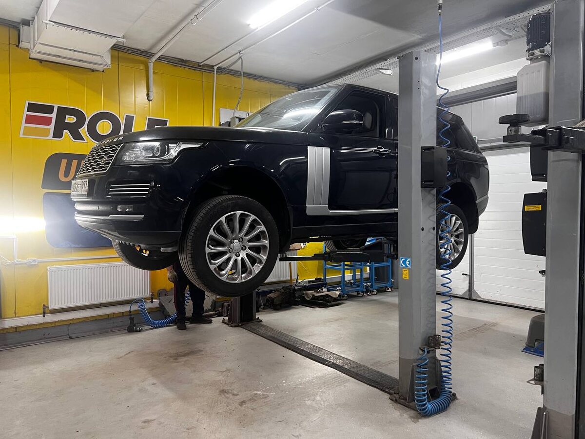 Один из способов определить стуки в подвеске Range Rover загнать его на вибро стенд