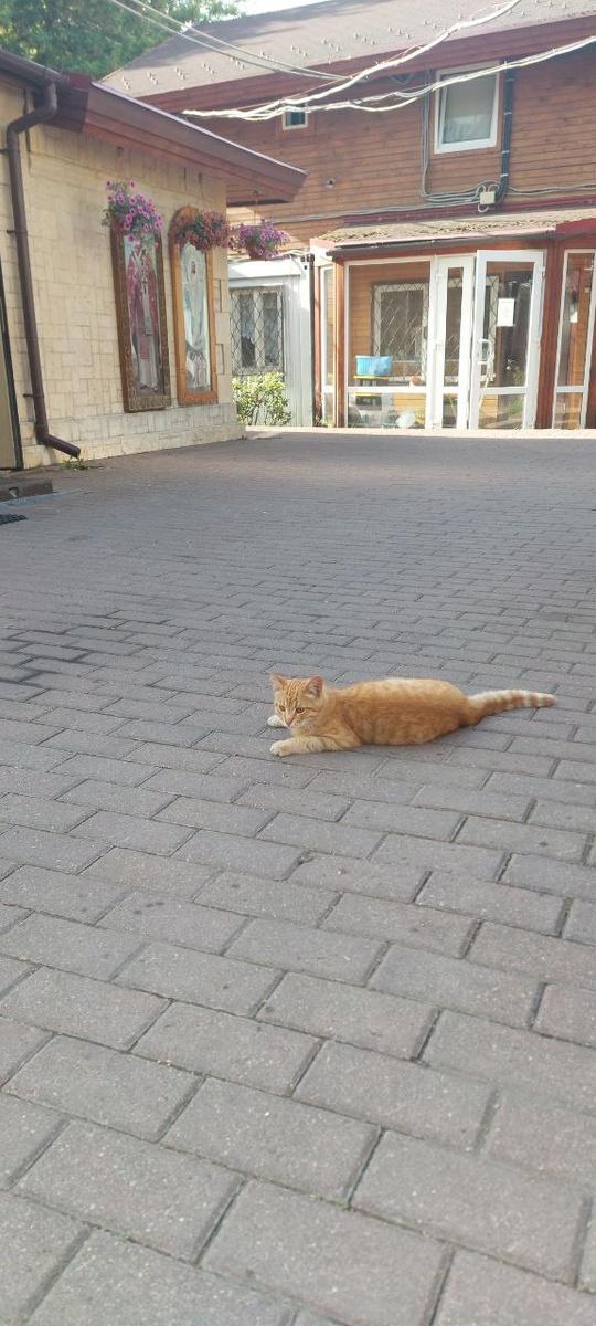 Сегодня ходили с детьми на раннюю службу. Встали в 6 утра и по безлюдному городу, по отличной московской погоде дошли до храма. На территории нас встретил вот такой рыжий кот. Завтра Сергей сдает последний экзамен ЕГЭ. За всех помолились. С праздником всех нас!
