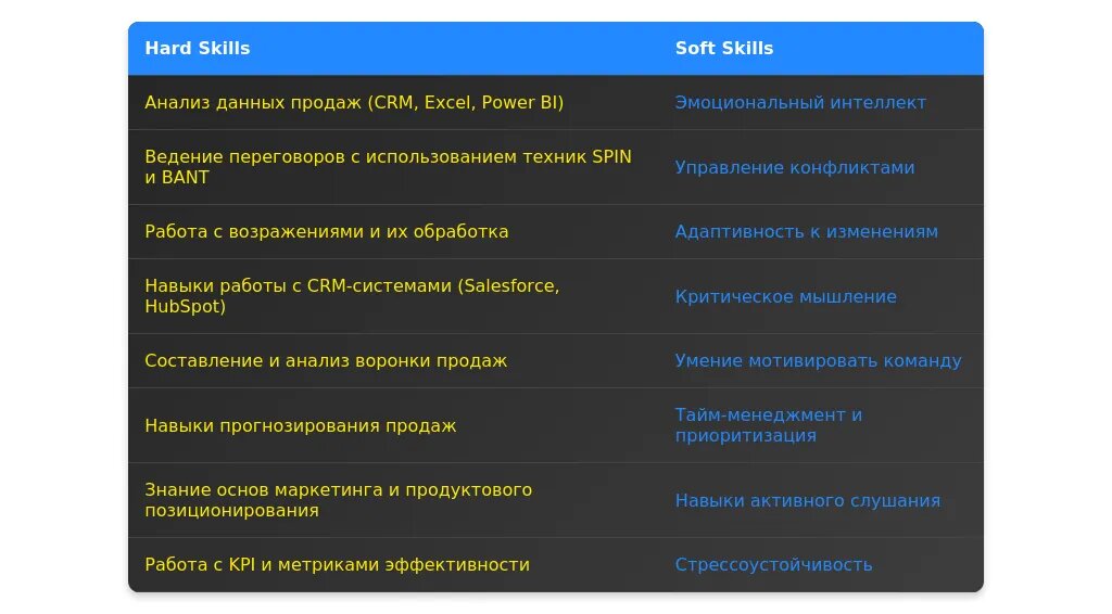 Плохо: "Навыки продаж."