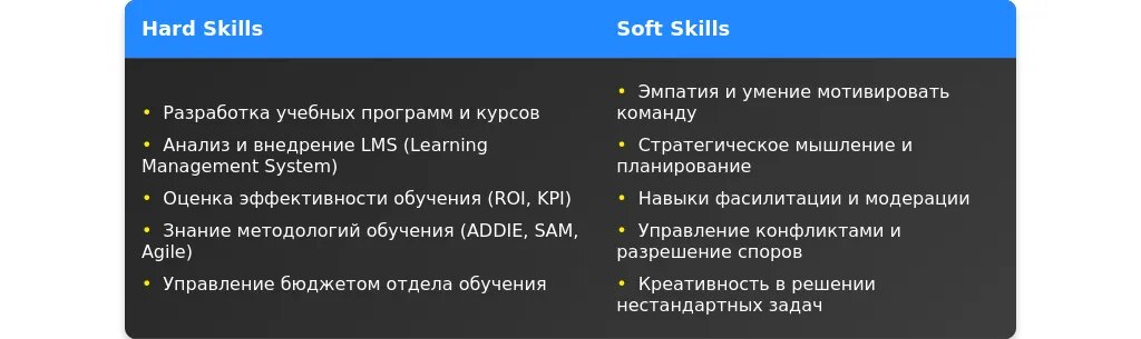 После: "Управление командами, разработка и проведение тренингов, знание LMS-систем (Moodle, Canvas)."