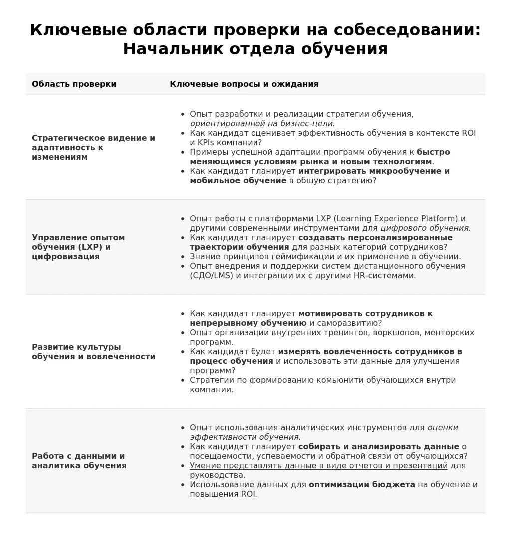 Этапы собеседования на должность начальника отдела обучения в 2025 году