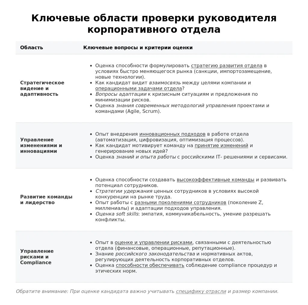 Подготовка к собеседованию на должность руководителя корпоративного отдела