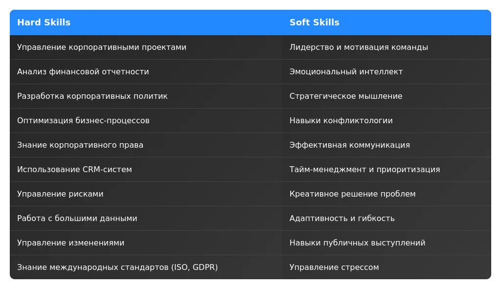 Ключевые слова: корпоративное управление, стратегическое планирование, руководство командой, корпоративные коммуникации, операционная эффективность.