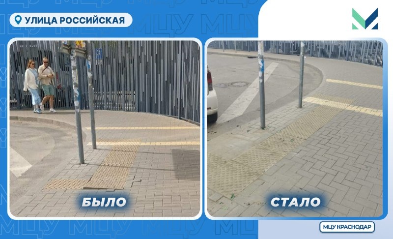 В Краснодаре отремонтировали участок тротуара с тактильной плиткой рядом со спортивным центром «Стань чемпионом». Обновление сделали после жалобы горожан, сообщили в МЦУ Краснодара.