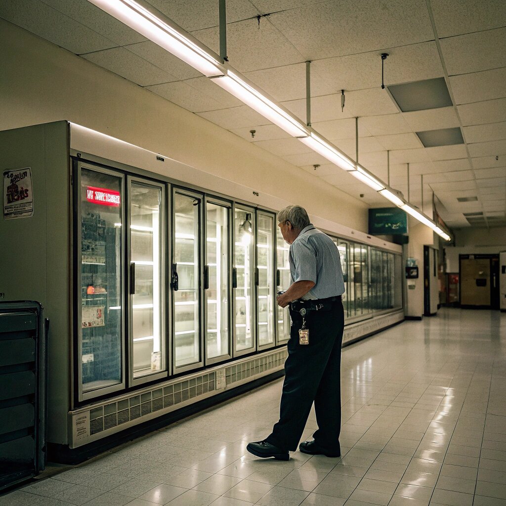Виктор Семенович проверял холодильные витрины в третий раз за ночь. Двадцать лет работы охранником в супермаркете "Радуга" научили его: если что-то кажется странным — проверь еще раз. А сегодня дверца морозильника с мороженым хлопала сама по себе.