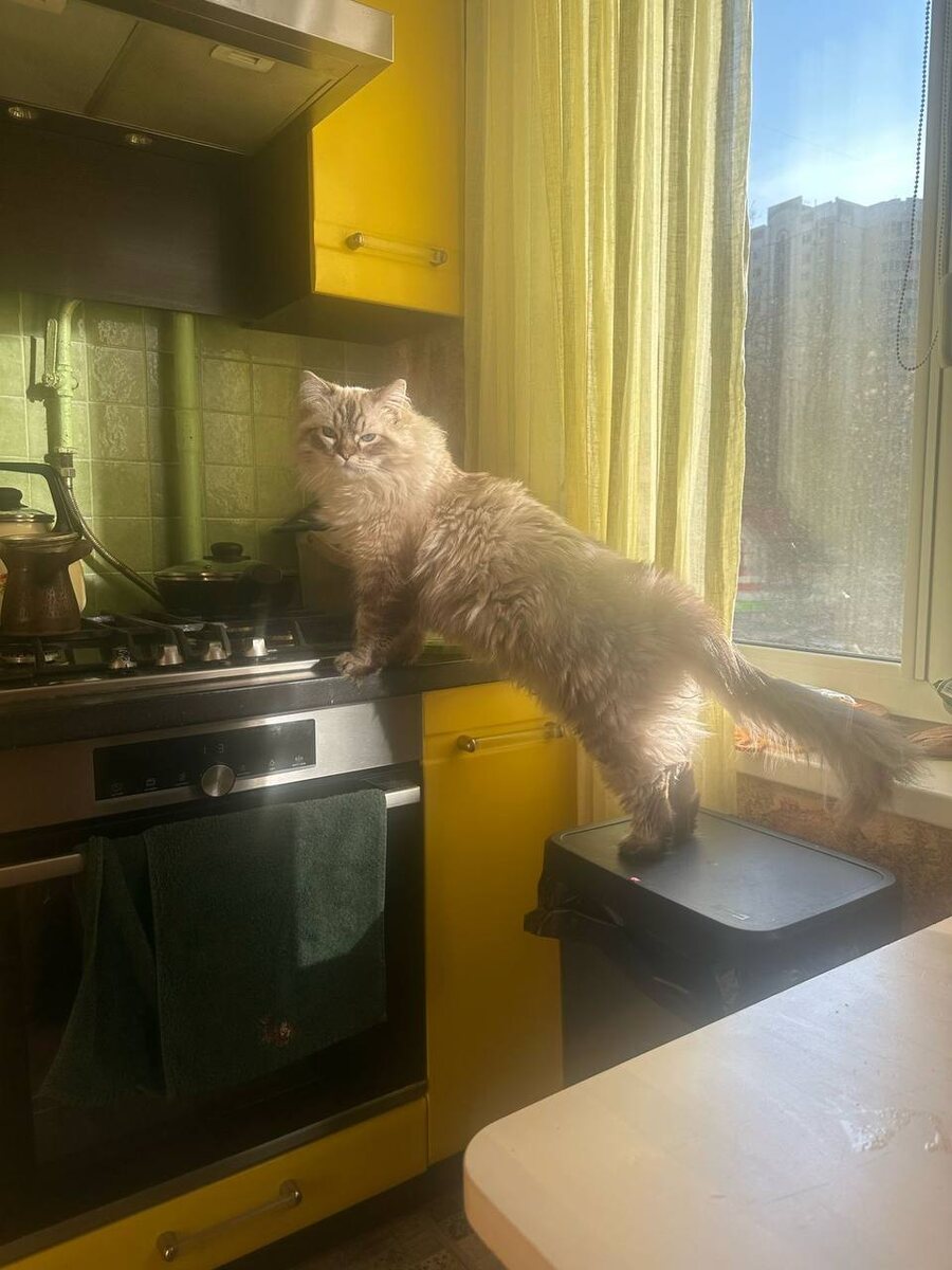 «Я извиняюсь, а что-то насчёт покушать сегодня будет? Кроме чайника? Имейте гражданскую совесть, котику же не надо худеть к лету!»