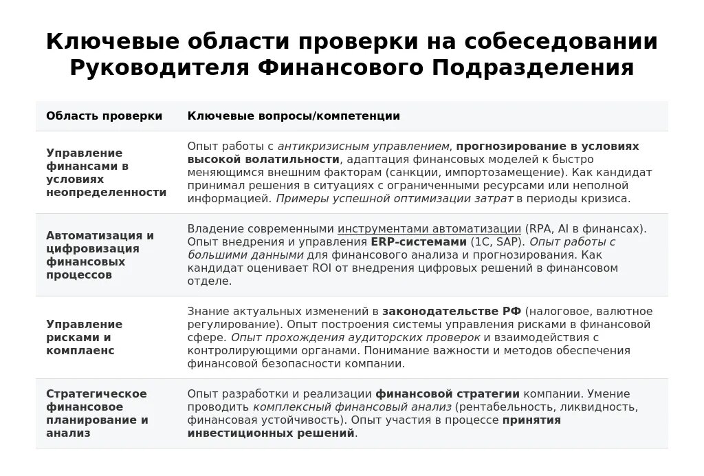 Подготовка к собеседованию на должность руководителя финансового подразделения