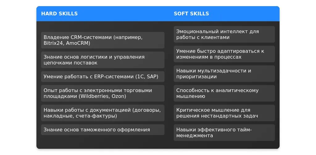 - ✅ Список актуальных навыков менеджера по оформлению заказов и как их презентовать