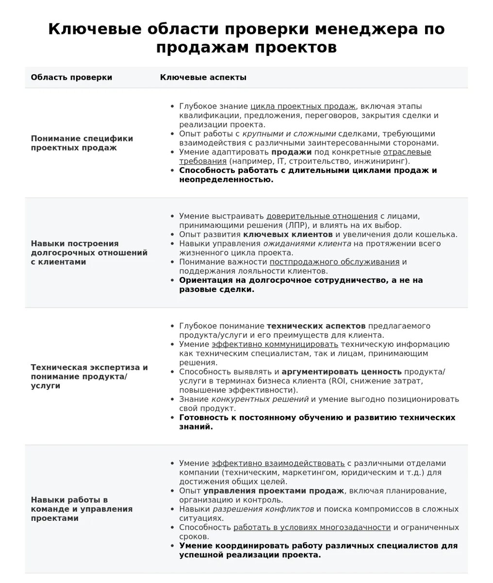 - Опыт в продажах сложных проектов: Важен опыт работы с аналогичными проектами, знание рынка и умение выстраивать отношения с ключевыми клиентами. Например, если вы продавали IT-решения для банков, подготовьте кейсы с конкретными результатами (увеличение объема продаж на X% за Y месяцев благодаря внедрению Z).