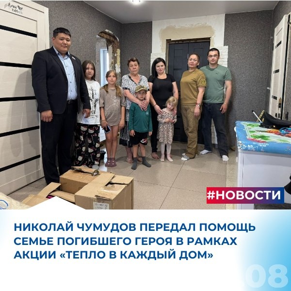 Руководитель Комитета семей воинов Отечества Республики Калмыкия Виталия Кокаева совместно с депутатом Элистинского городского Собрания, руководителем Ассоциации ветеранов СВО Калмыкии Николаем Чумудовым навестили особенную семью Четверо детей этой семьи остались без мамы и лишились отца — участника специальной военной военной операции, который героически погиб, защищая Родину. «Мы передали семье тёплые одеяла и подушки, коробки с продуктами питания, а главное — частичку человеческой заботы и поддержки. Семье также была предложена бесплатная юридическая помощь, если возникнет такая необходимость», — рассказала Виталия Кокаева. Депутат Элистинского городского Собрани, руководитель Ассоциации ветеранов СВО Калмыкии Николай Чумудов подчеркнул: «Наш долг — быть рядом не только в трудный час, но и в каждодневной заботе. Такие семьи — наша общая ответственность и боль. Мы сделаем всё, чтобы они чувствовали, что не одни». Мероприятие является частью масштабной акции, направленной на оказан