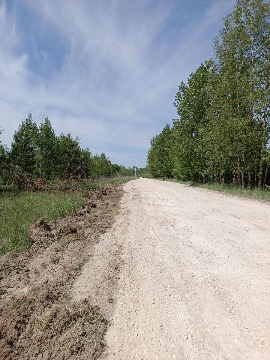 Готово! Ещё и дорогу чуть сюда, вбок, выровняли, грейдером. Но пока мягкая она, несколько камазов, груженных, пустить по пути этому нужно. А кучки убрать грейдером не получится. Слишком большой/тяжёлый, может дёрн содрать и лишь ещё кучек наделать. Посему оставляем так. Дожди и снега укатают.