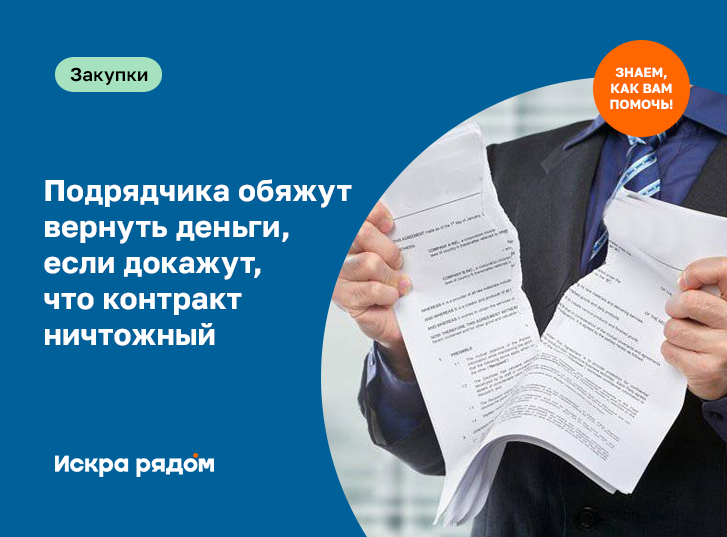 Подрядчика обяжут вернуть деньги, если докажут, что контракт ничтожный