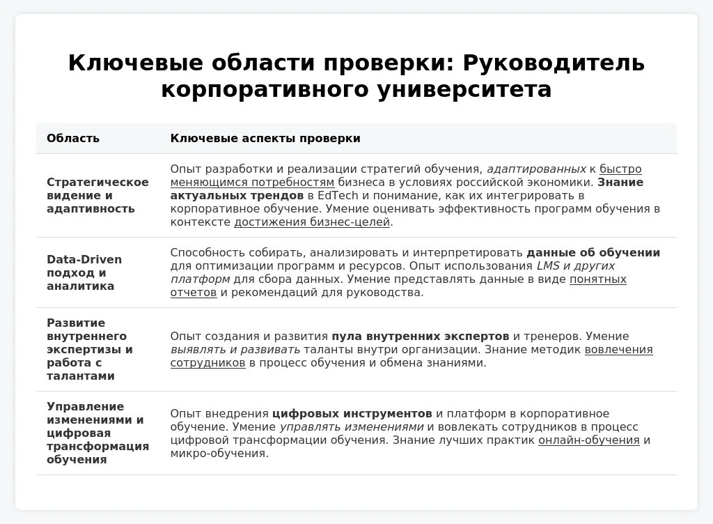 Подготовка к собеседованию: Руководитель корпоративного университета