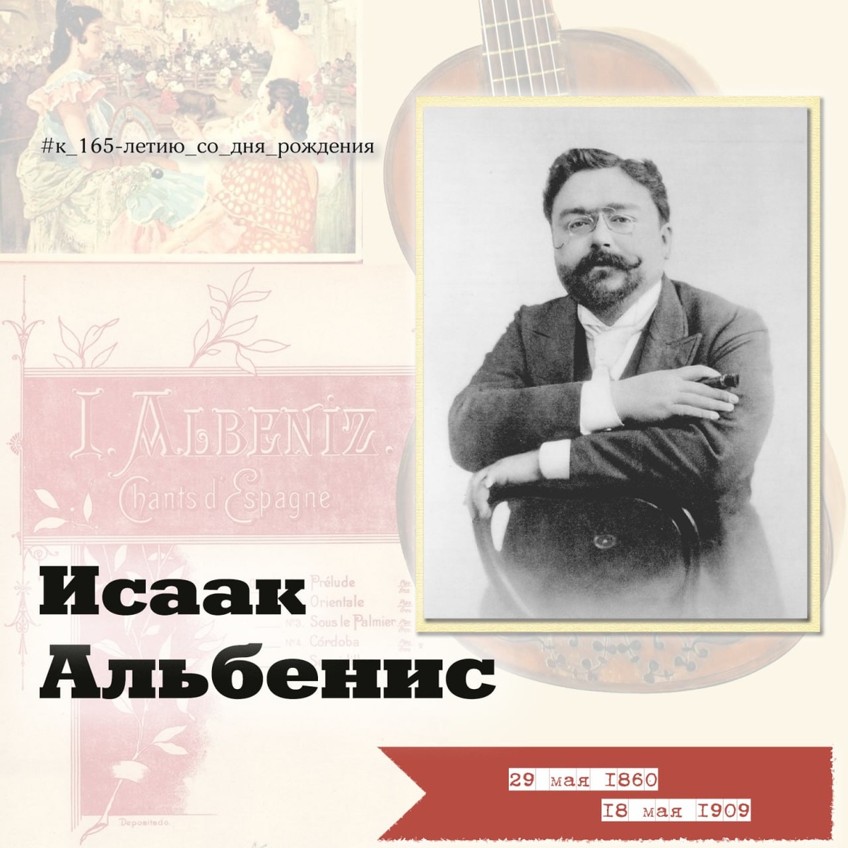 🎶 Ко дню рождения Исаака Альбениса: 165-летие Исаак Альбенис — гений испанской музыки, влюблённый в народные ритмы. В юбилейную дату вспомним наиболее яркие факты о жизни и творчестве композитора. Исаак Альбенис (1860–1909) — один из самых ярких композиторов Испании, чья музыка стала символом национального романтизма. Его произведения, наполненные страстью, ритмами фламенко и народными мелодиями, до сих пор звучат в концертных залах. Но за блестящей карьерой скрывается удивительная и даже авантюрная жизнь. 🔵Вундеркинд, сбежавший из дома в 10 лет Альбенис начал играть на фортепиано в 4 года, а в 7 уже давал концерты. В 10 лет он сбежал из дома, путешествуя по Испании как бродячий музыкант. Позже он отправился в Южную Америку, а во время путешествий на Кубу и в США работал в порту, чтобы не умереть с голоду. 🔵Обучение у Ф. Листа и мечта о славе пианиста Альбенис учился у Ференца Листа — легендарного виртуоза. Испанская пресса в один голос называла его «испанским Рубинштейном». Нач