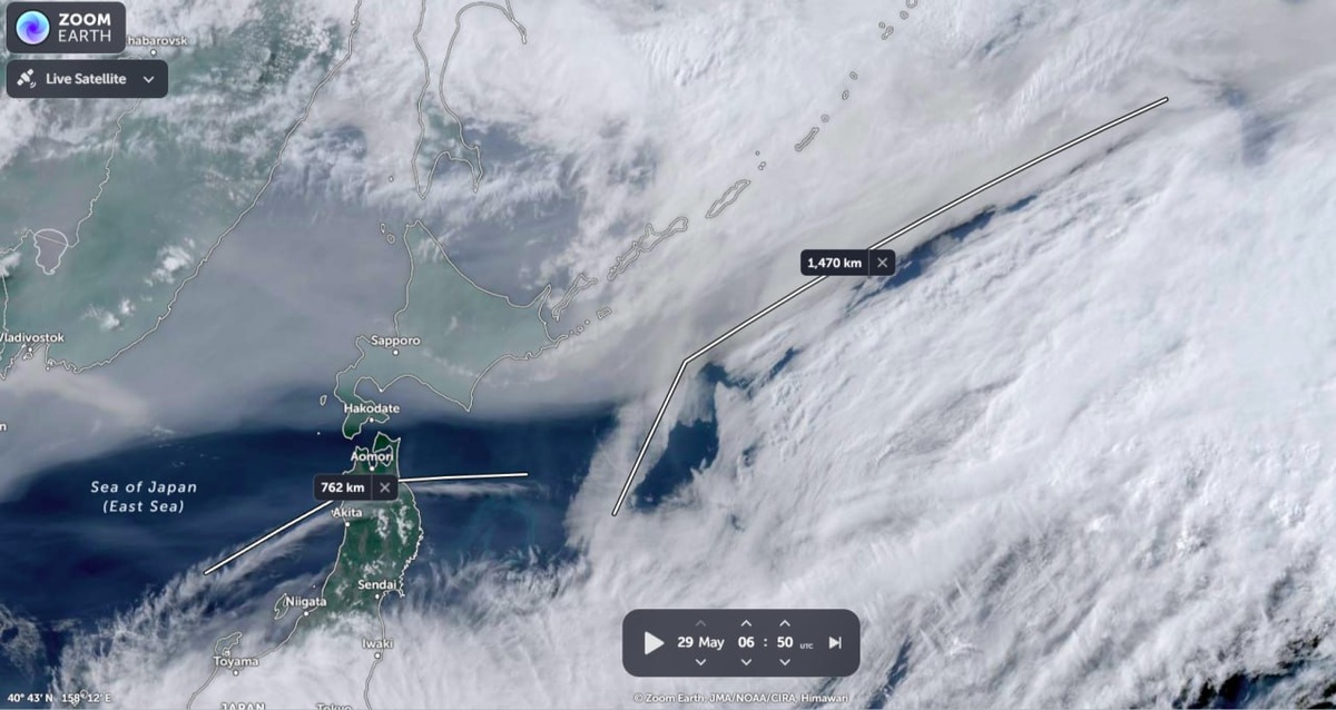 Трассер по Курилам увеличился в протяженности до 1470 км (М7.3+/-0.2). Также над Японией вылетел углообразный ОСТИ, трассирующий юго-западную границу Охотской плиты.