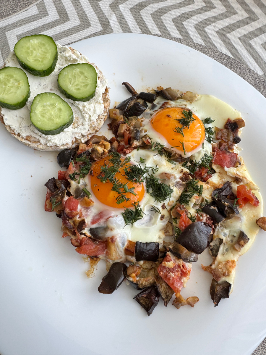 - 🍆 Баклажан: Вместо него отлично подойдут кабачки или цукини — с ними завтрак будет легче и свежее.