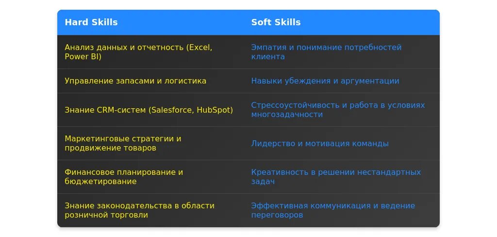 Анализ требований вакансии для профессии "менеджер отдела розничных продаж"