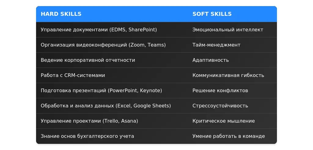 Личные качества (soft skills) — это навыки, которые помогают эффективно взаимодействовать с коллегами и клиентами. Топ-10 важных soft skills для ассистента офиса:
