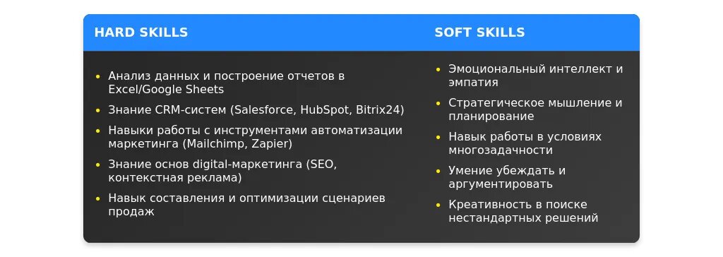 После адаптации: "Холодные звонки, CRM-системы, аналитика продаж." Релевантные навыки.