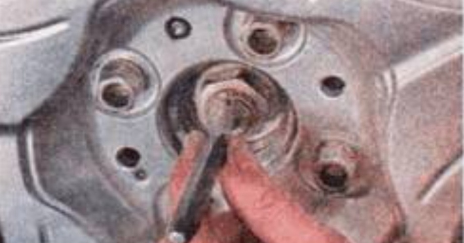 Подшипник ступицы переднего колеса нерегулируемый. При появлении люфта в подшипнике его необходимо заменить. Для выполнения работы необходим помощник, а также потребуются: — надежная подставка под автомобиль; — съемник внутренних стопорных колец; — набор приспособлений для замены подшипника ступицы. Снятие Выпрессовывайте подшипник ступицы только в случае его замены, поскольку при демонтаже он, скорее всего, разрушится. 1. Подготавливаем автомобиль к выполнению работы. 2. Снимаем декоративный колпак с колеса. 3. Подкладываем противооткатные упоры под передние колеса автомобиля. Попытка отвернуть гайку оси ступицы без выпрямления ее замятого края может привести к повреждению резьбы на оси. 4. Постукивая по кернеру молотком, отгибаем замятый в проточки вала привода край гайки (в двух местах). 5. Помощник нажимает педаль тормоза и удерживает ее в нажатом положении. 6. Торцовым ключом на 30 мм с длинным воротком ослабляем затяжку гайки ступицы переднего колеса. 7. Снимаем переднее колесо и