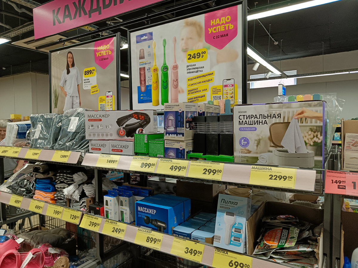 Вот мы и дождались очередного четверга в "Чижике", где на полках магазина выставили очередной завоз товаров и была проведена распродажа позиций, находившихся в продаже длительное время. Товары были уценены на 30-50%. Следует отметить, что многие покупатели посещают данный магазин именно в этот день, чтобы воспользоваться предлагаемыми скидками и оптимизировать свои расходы. И в этом обзоре, делюсь с вами увиденным в "Чижике" города Крымск. Начну с новинок, которые появились вперемешку с товарами из прошлых поставок. К примеру универсальный массажёр-подушка для шеи и плеч, с двумя режимами вращения из 8 роликов, функцией нагрева и таймером до 15 минут. Цена 1499 рублей. Аккумуляторная пилка для педикюра с 3 насадками в комплекте и рабочим временем до 90 минут. Цена 699 рублей. Портативная газовая плита с функцией пьезоэлектрического поджига и возможностью регулировки интенсивности пламени. Стоимость составляет 999 рублей. Представленный товар обладает более низкой ценой по сравнению с а