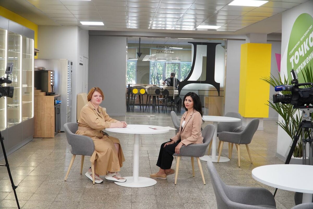 🎙Точка притяжения стала съёмочной площадкой программы «Обозреватель» на ТОЛЬЯТТИ 24. На вопросы ведущей Татевик Бабаян ответила ректор Университета сервиса Любовь Выборнова. В фокусе разговора: 🟣инфраструктурные и грантовые проекты университета; 🟣привлечение молодежи для учебы, работы и жизни в городе Тольятти; 🟣компетенции университета в сфере беспилотных авиационных систем (БАС); 🟣запуск новых лабораторий и сетевых программ; 🟣рост контингента студентов и капитальный ремонт общежития; 🟣профессии и компетенции будущего для обеспечения технологического лидерства в сфере: БАС, промышленного дизайна, туризма, креативных индустрии; 🟣особенности приёмной кампании 2025 года и новые возможности для абитуриентов. 📸Съёмочный день прошёл ярко и содержательно. Когда выйдет выпуск — узнаете первыми, не пропустите!