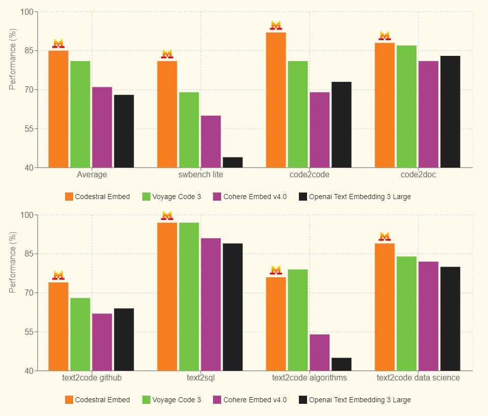 Mistral выпустил code embedding модель Codestral Embed — первая embedding-модель Mistral, ориентированная на работу с кодом. В компании говорят, что в бенчмарках новинка опережает решения от Cohere и OpenAI. Модель доступна через API по цене 15 центов за миллион токенов. https://mistral.ai/news/codestral-embed