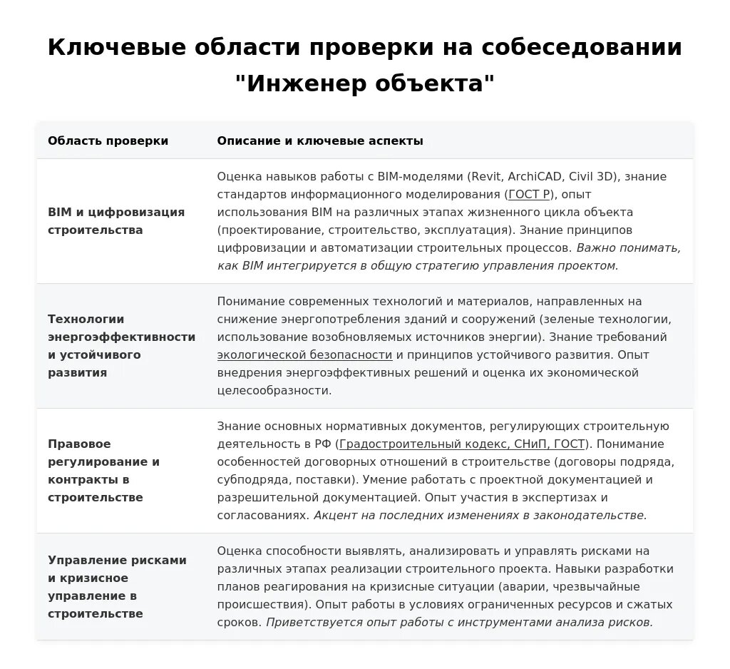 Как подготовиться к собеседованию на Инженера объекта в 2025 году