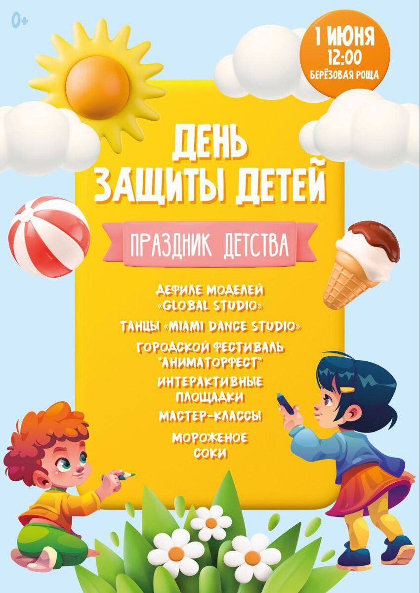 🎉В это воскресенье в Новомосковске состоится яркое и весёлое празднование Дня защиты детей Мероприятие обещает стать настоящим праздником радости и хорошего настроения для всей семьи. Гостей ждут весёлые игры, музыкальные выступления, танцы и много смеха — всё то, что так любят дети. А взрослые смогут окунуться в атмосферу детства и почувствовать себя немного юнее, ведь в душе каждый остаётся ребёнком.