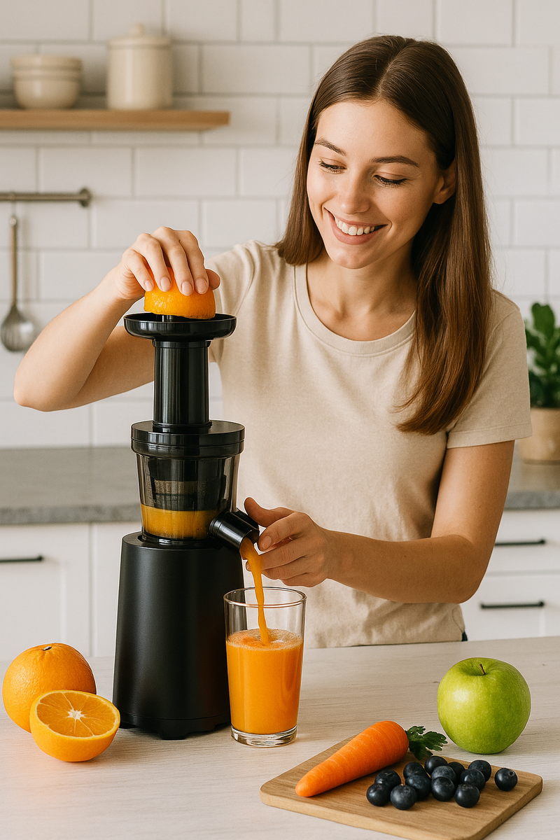 Модель сочетает компактность, бесшумность и простоту — идеальный выбор как для начинающих, так и для тех, кто давно готовит соки дома.