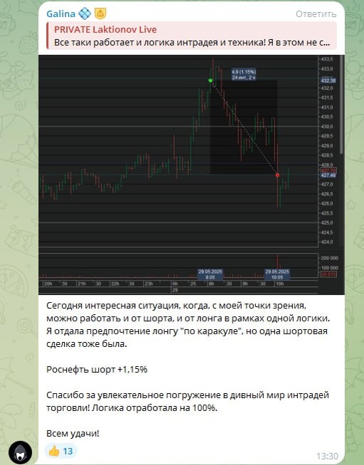 🆘Немного результатов из закрытого ТГ канала. ❗️Сегодня все на 100% пошло по плану. И шорт на фиксе с открытия и отскок по фону . 💪Хвастаться нужно не своими сделками и даже не своей аналитикой!! А тем как ты эту аналитику доносишь до подписчиков!! ♾НИ ОДИН КАНАЛ НЕ СМОЖЕТ ХВАСТАТЬСЯ ЕЖЕДНЕВНО РЕЗУЛЬТАТАМИ СВОИХ ПОДПИСЧИКОВ!!!! ____________________________________ ✅БЕСПЛАТНЫЙ КУРС!!! - НЕ ПЛАТИТЕ ИНФОШЛЮХАМ ЗА КУРСЫ!!!! ✅Советую проверенного брокера с оптимальными условиями. - ЛУЧШИЙ ДЛЯ ИНТРАДЕЯ!! 🆘 Присоединяйся!!! ТГ канал @LaktionovPrivat_bot - Подписка отбивается за одну сделку!