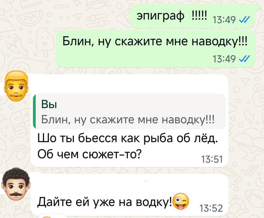Но пока это случится - мне нужен достойный эпиграф! - подумала я и пошла портить настроение друзьям.