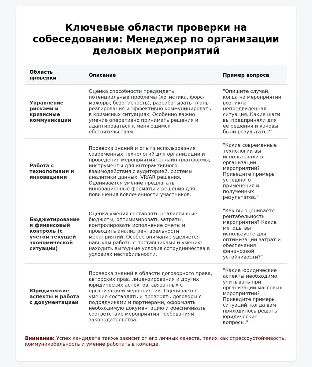 Работодатели оценивают не только профессиональные навыки, но и личные качества, необходимые для успешной работы в сфере организации мероприятий.