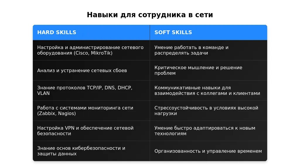 - Делайте акцент на базовых навыках, таких как знание основ сетей и оборудования.