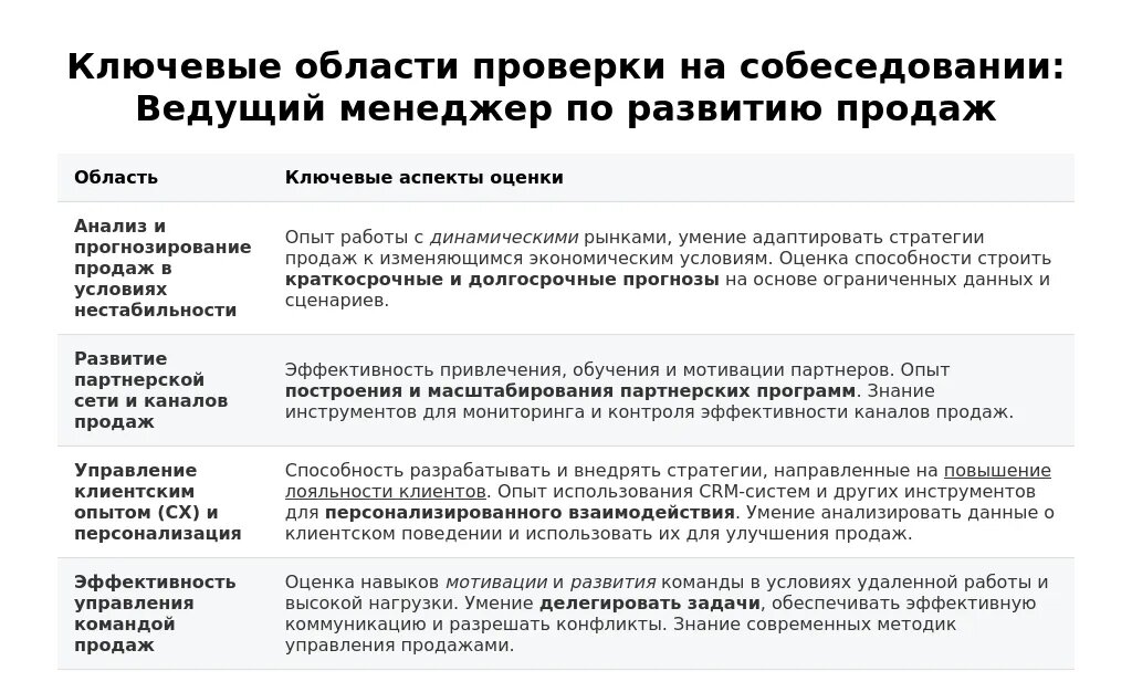 Подготовка к собеседованию: ведущий менеджер по развитию продаж