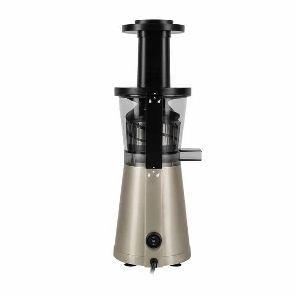 Модель отлично справляется с твердыми овощами, такими как морковь и свекла, а также с мягкими фруктами и зеленью. Конструкция прибора компактная и вертикальная — соковыжималка не займет много места даже на самой небольшой кухне.