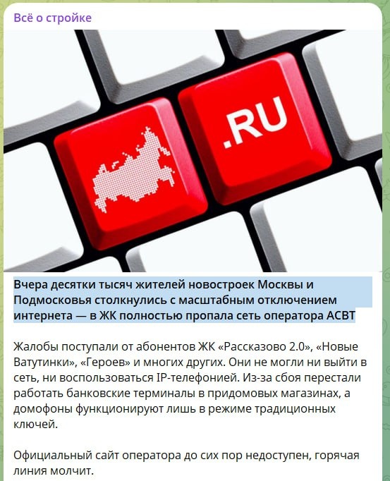 Сегодня "навернулся" маленький интернет-провайдер, который в нашем городке является основным. Счастье, что есть мобильный интернет от МТС, можно спокойно работать, но. РАДИО НЕТ, ТЕЛЕВИДЕНИЯ НЕТ, ИНТЕРНЕТА НЕТ - это если б не было раздачи от МТС. Отсюда блин снова вопрос к Российской извините за выражение Академии так сказать Радио, будь они не раз упомянуты в отдельном паблике, посвящённом проклятиям и всякой грязи, заменяющей звенья цепи, связующей всех кукушек этого леса: Вы ***, о, загубившие цифровое вещание, как отвечать будете на вопросы, которые ставит перед Вами общество? Дома радиоприёмников у людей нет, слушать этот бред, который прошёл через Ваше сито - зачем? Радиоприёмники в машинах, но машину в дом не закатишь. У меня должен стоять на полке дома радиоприёмник DAB, который должен принимать больше каналов, чем Вы *** допустили до FM. ГДЕ МОЁ РАДИО? *** этот белый стих со сложным ритмом написан под впечатлением от некоторого пакета новостей 5 мая: Москвичи жалуются н