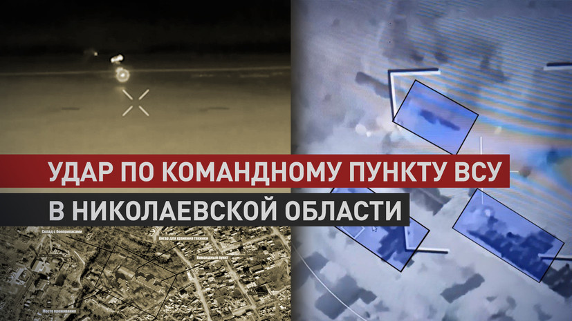Минобороны РФ показало кадры уничтожения командного пункта центра спецопераций «Юг» ВСУ в Николаевской области. Комплексный удар расчётом «Искандер-М» и беспилотником «Герань-2» был нанесён по личному составу, в том числе по командованию подразделения, а также по складу боеприпасов и местам стоянки техники.