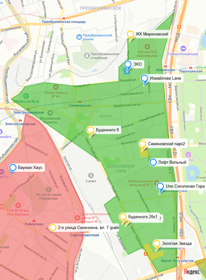 Друзья, добрый день, продолжаем статьи про локации Востока. Мы с Вами уже рассмотрели Басманный, Сокольники и Лефортово. Продолжаем? Тогда, сегодня - Соколиная Гора. Границы жилого массива соответствуют границам административного района Москвы. Мы с Вами недавно выяснили, что наши цари любили соколиную охоту и занимались ей в Сокольниках, а вот заказник соколов и кречетов со времен Алексея Михайловича Тишайшего, т.е. с 50-х годов XVII века, находился именно здесь. Из интересного, думаю, Также здесь, возможно, самая высокая концентрация спортивных сооружений на душу населения среди всех московских районов. Самый знаковый объект - Из современных жилых комплексов, обратите внимание на: Золотая Звезда, Семёновский Парк 1 и 2, Измайлово Lane, ЭКО, Измайловский Парк, Буденного 9 и т.д. Из строящегося - А мы с Вами попробуем найти интересные варианты по соотношению цена/качество: 6-ой этаж 8-этажного кирпичного дома серии II-29 1962 года постройки. 14 минут до станции "Шоссе Энтузиастов"